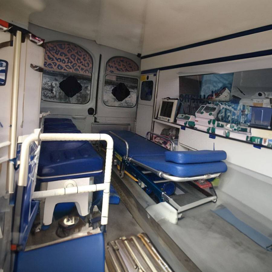 1、救护/监护车内救护设备齐全:急救药物、有创呼吸机、无创呼吸机、多个微量注射泵、吸痰器、多导心电监护仪、高纯度医用氧气、救护推车床、软担架、骨科铲架等。