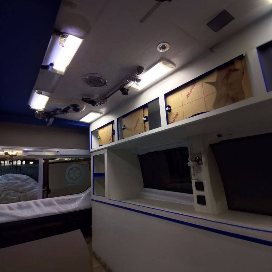 3.配备专业随车医护人员、呼吸机、吸痰器、心电监护仪、微量注射泵推拉担架车等各种专用救援设备仪器。